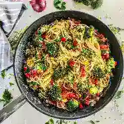 Schnelle Nudelpfanne – vegetarisch Rezept - Rocely
