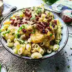 Vegane Mac and Cheese mit Herzhaften Vegan Schinkenwürfeln Rezept - Rocely