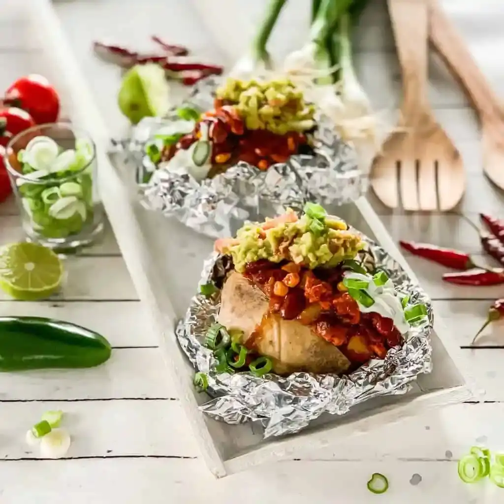 Folienkartoffeln mit Chili sin Carne und Guacamole Rezept - Rocely