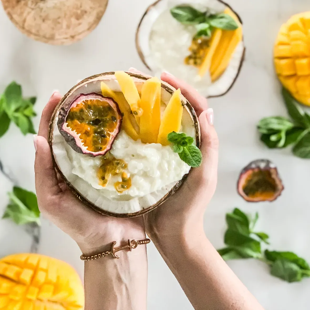 Kokos-Milchreis mit Passionsfrucht und Mango Rezept - Rocely