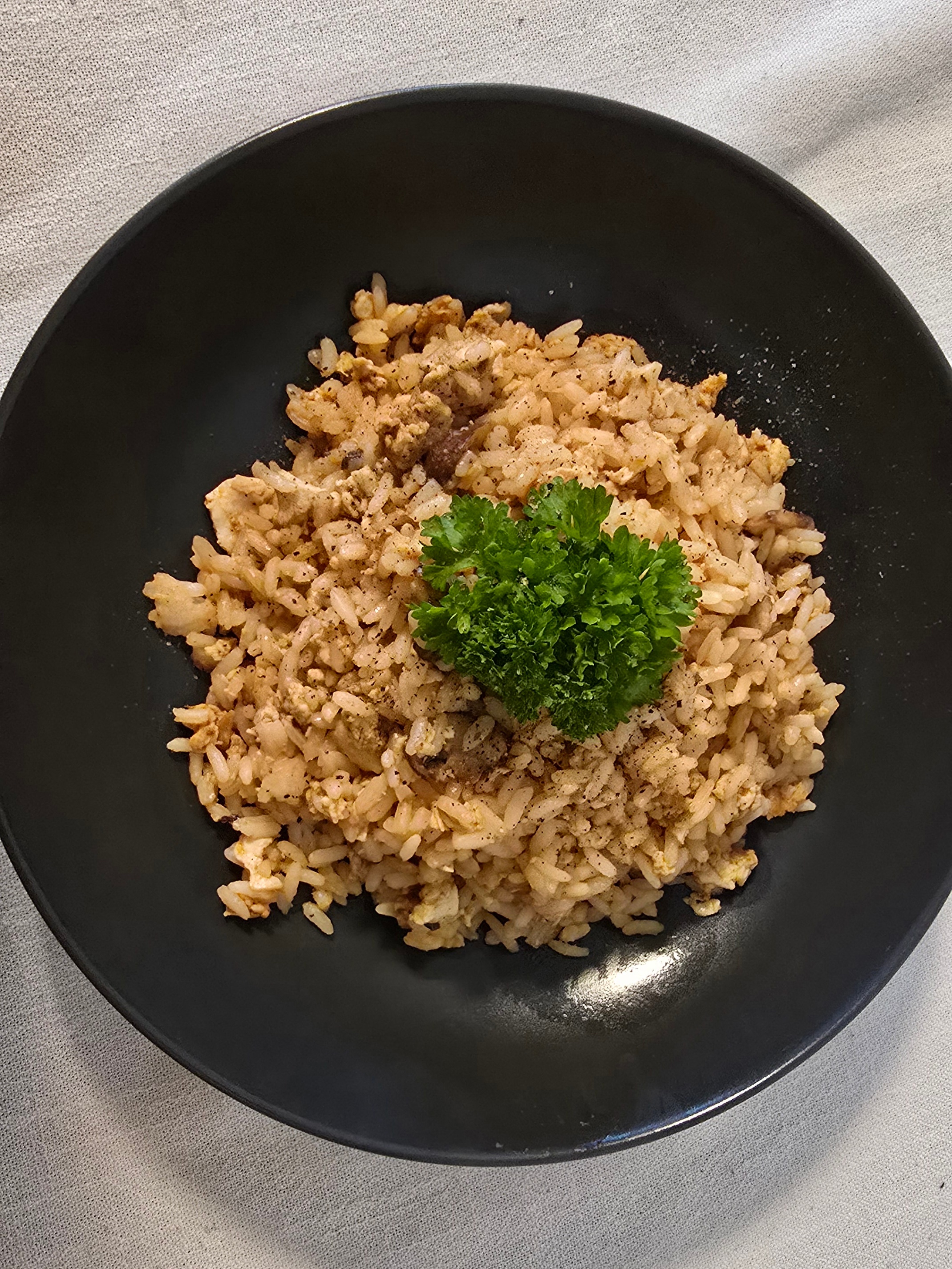 Zum Schluss den Reis nach und nach dazu geben und gut vermenge.