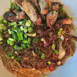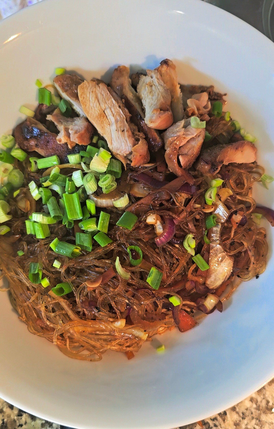 Weiche die Glasnudeln gemäß Packungsanweisung in warmem Wasser ein, bis sie weich sind.
