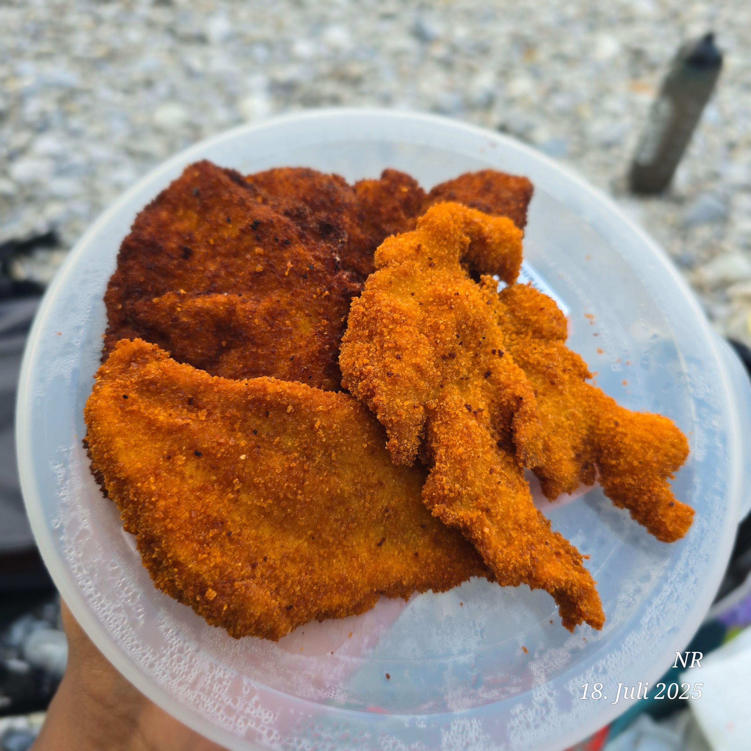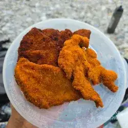 Bereite die Panierstraße vor: Stelle drei tiefe Teller oder Schalen bereit. Fülle eine Schale mit Mehl, eine weitere mit den verquirlten Eiern und die dritte mit den Semmelbröseln.