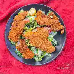 Wasche den Romanasalat gründlich, trockne ihn und schneide ihn in mundgerechte, grobe Stücke.