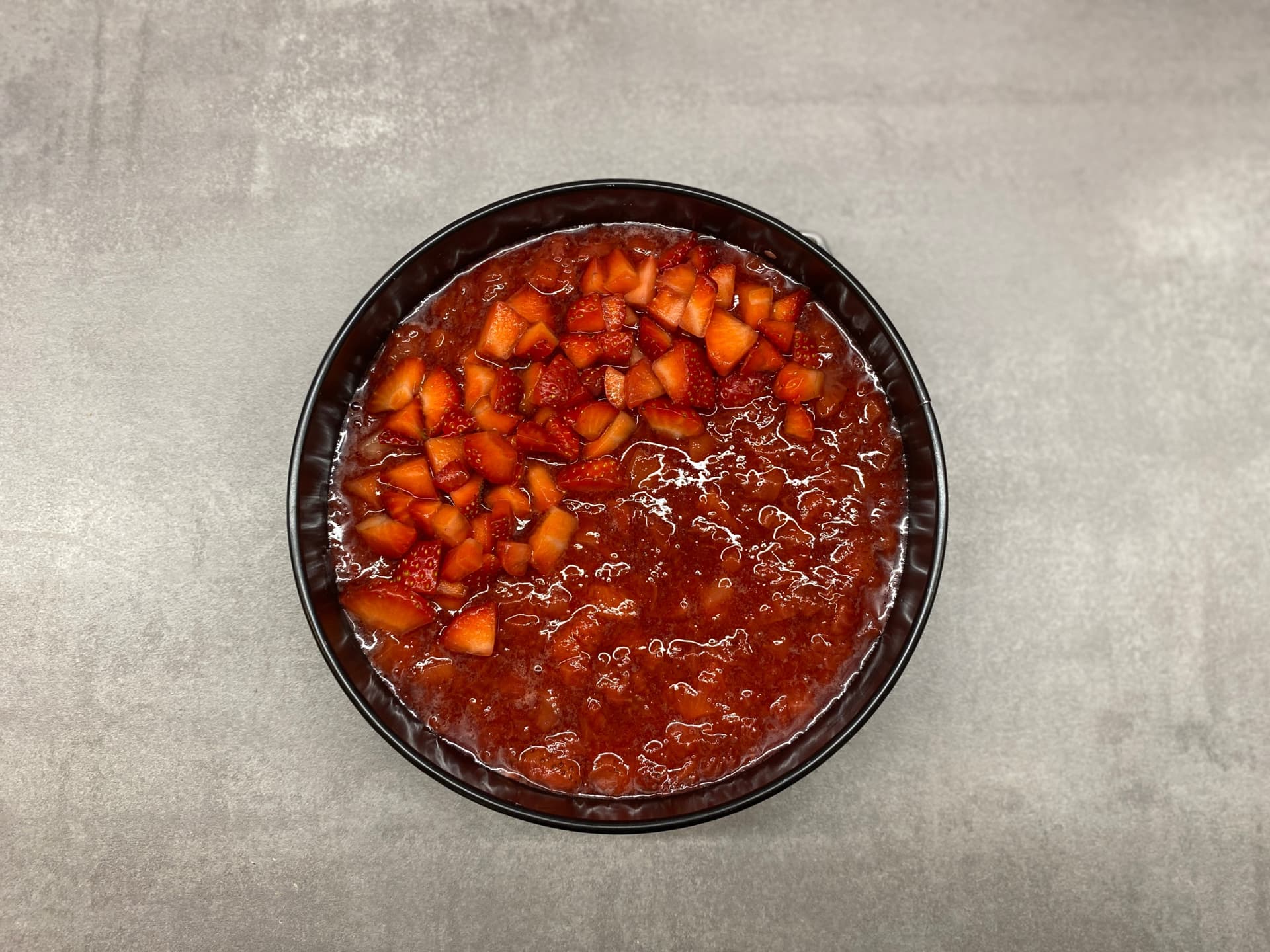 Transfer the mixture into a cake pan and press it down firmly with a glass to form a flat, compact base.