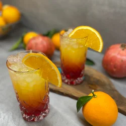 To achieve a beautiful layered effect, slowly pour 15 ml of grenadine over the back of a spoon, allowing it to sink gently through the juices.