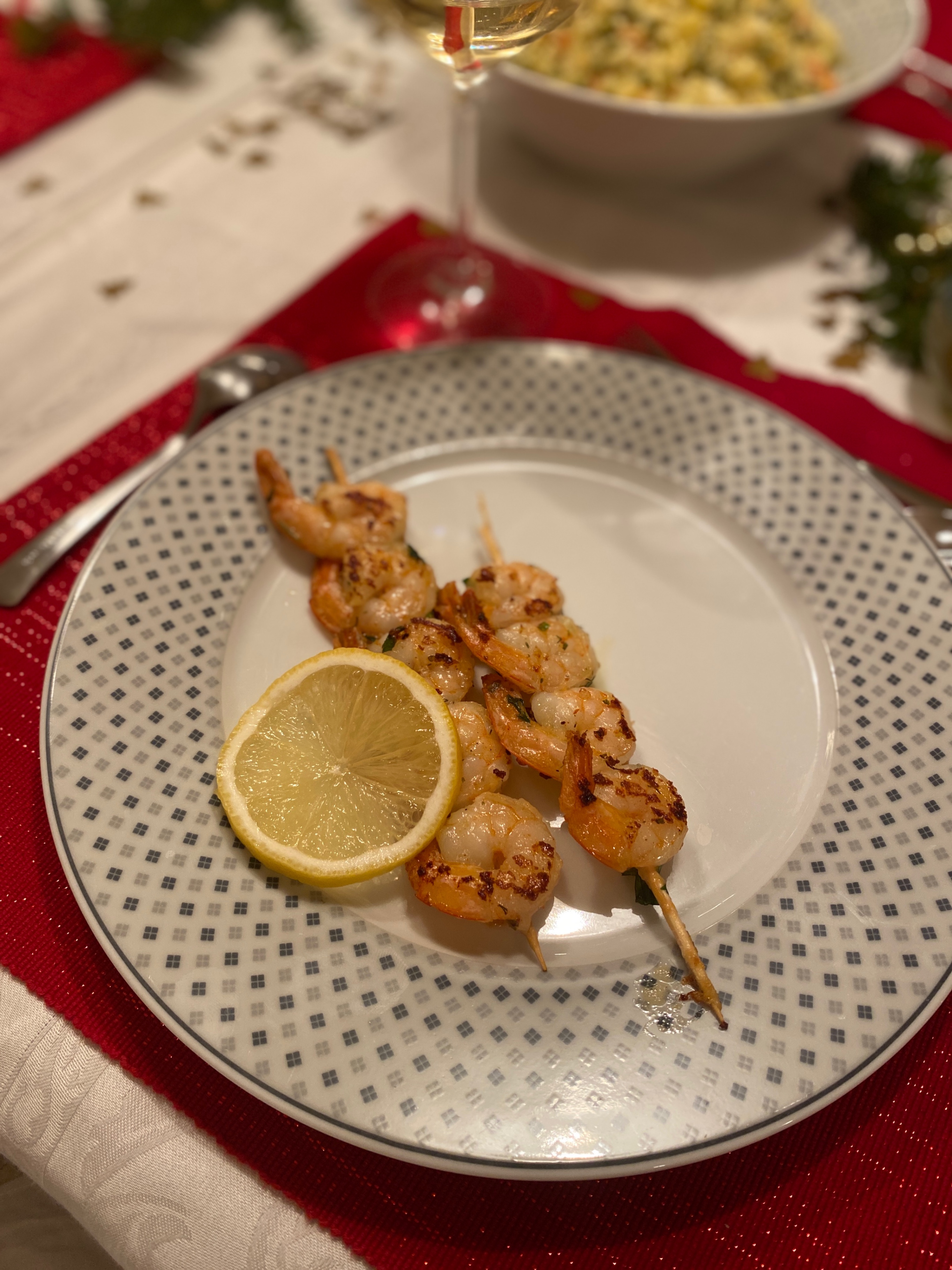 Place the shrimp skewers in the pan and cook on low heat for about 7 minutes per side, turning once. Keep the heat low to maintain juiciness.