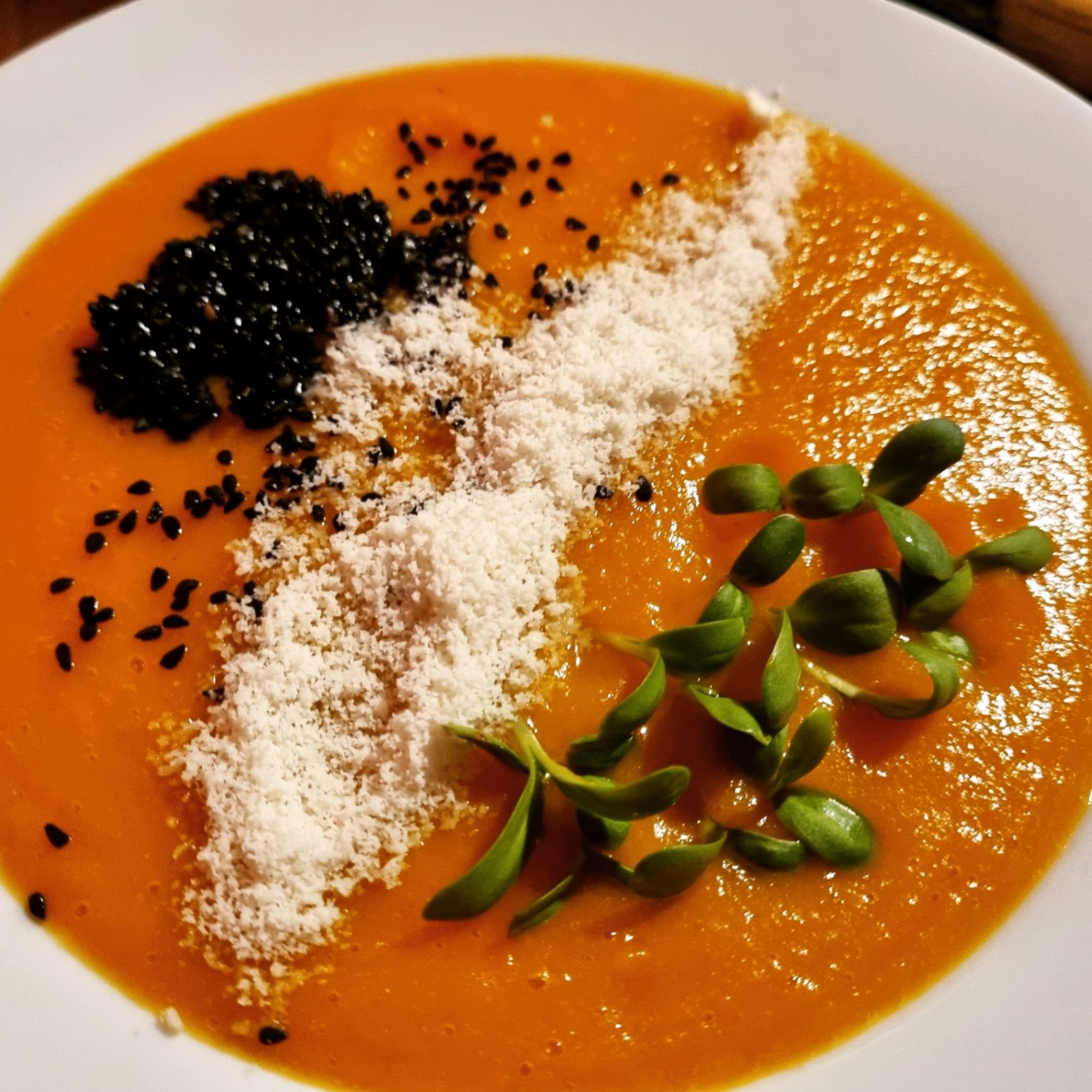 Lava bien la calabaza y las zanahorias, quítales las semillas y córtalas en cubos grandes.