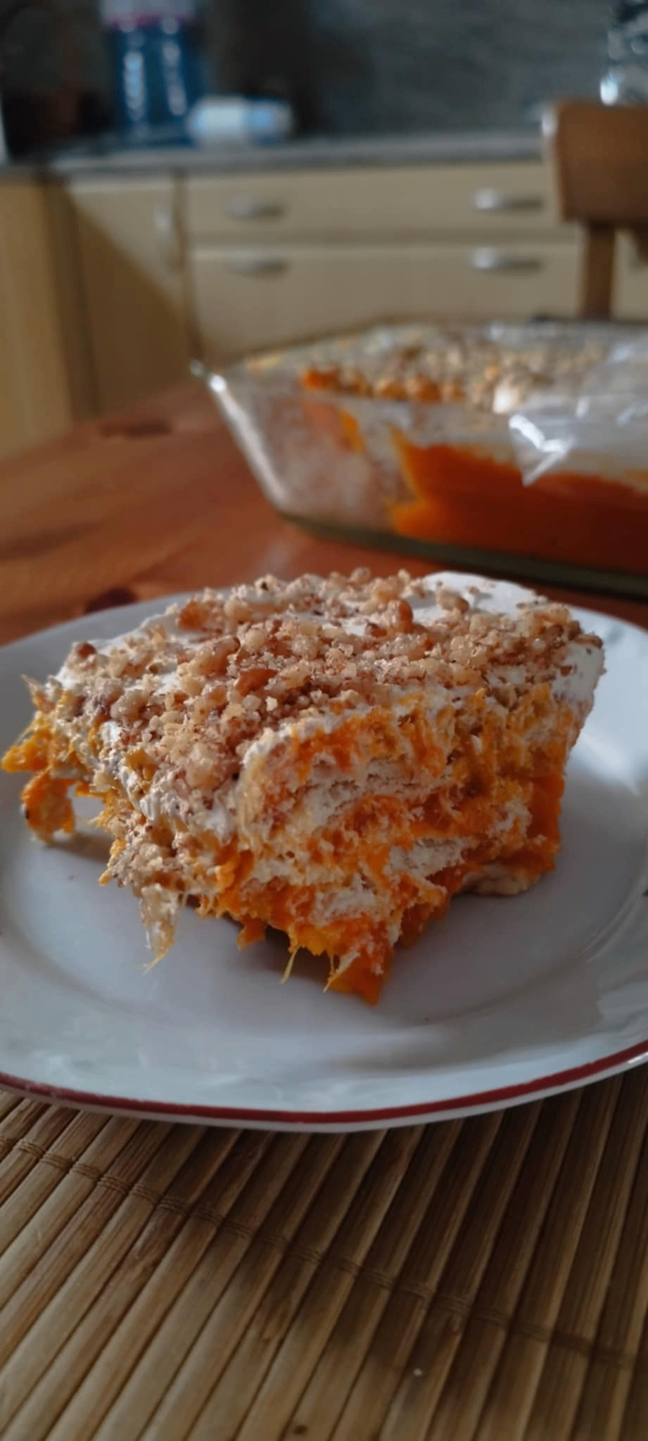 Hierve la calabaza con un poco de agua y tanta azúcar como quieras para que quede dulce. Yo usé una taza (unos 200 ml). Después de hervir, escurre el agua y machaca la calabaza con lo que te funcione mejor. No la dejes completamente suave, está bien dejar algunos trozos más grandes.