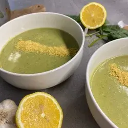 La Sopa de Brócoli es una sopa reconfortante y llena de nutrientes que incluye papas tiernas y brócoli vibrante, enriquecida con ajo, levadura nutricional y un toque de limón para darle brillo.