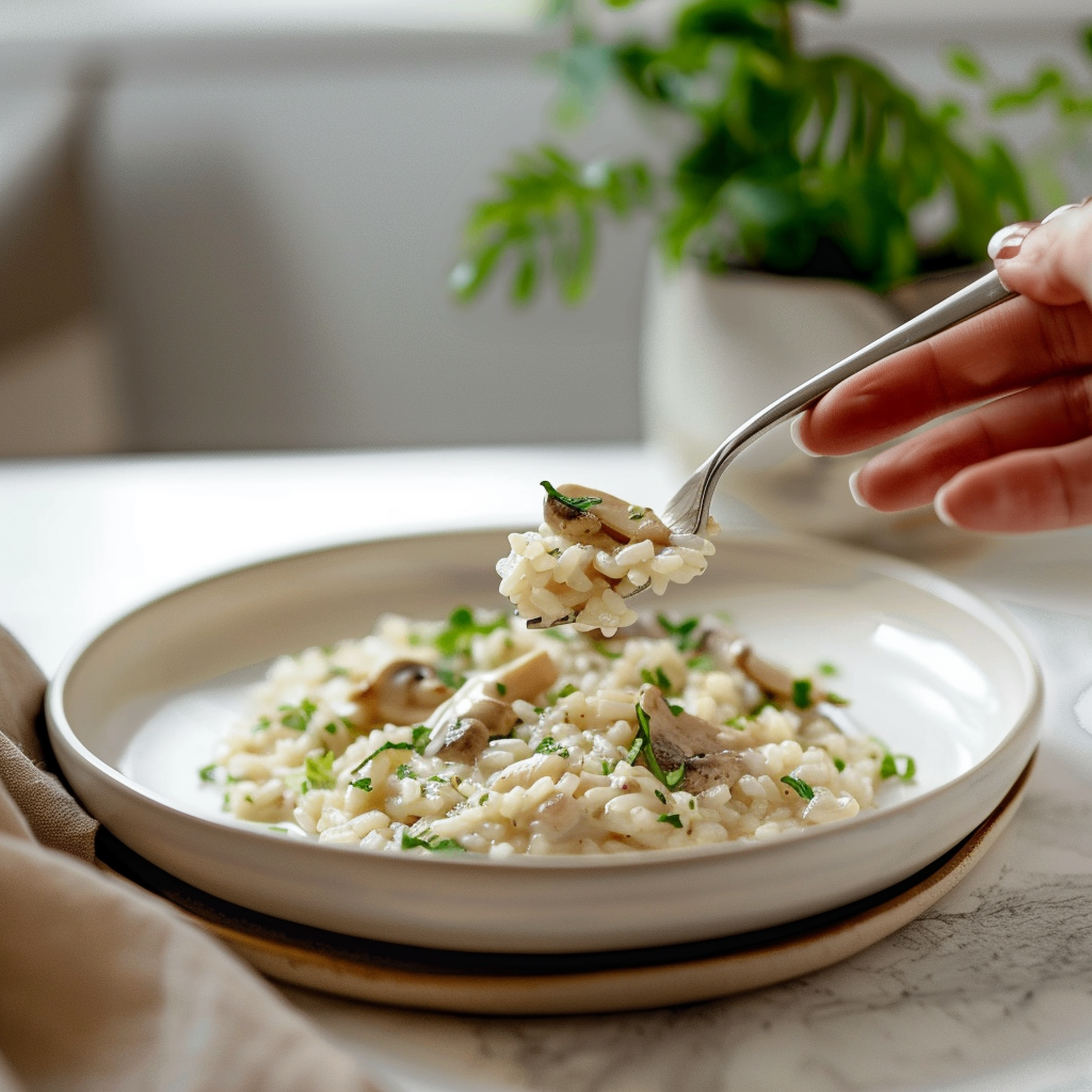 Le risotto aux champignons est un classique intemporel de la cuisine italienne, un plat réconfortant qui évoque les repas familiaux et les soirées douillettes. Son secret réside dans la patience et la technique, permettant à l'amidon du riz de se libérer progressivement pour créer cette texture onctueuse et veloutée si caractéristique. Cette recette, que je vous partage aujourd'hui, est la quintessence du risotto réussi : elle met en valeur la saveur terreuse des champignons frais, harmonieusement équilibrée par la richesse du parmesan et la subtilité du vin blanc. C'est un plat simple en apparence, mais dont la perfection réside dans chaque grain de riz, cuit à la perfection pour un résultat à la fois al dente et incroyablement crémeux. Il est idéal pour un dîner élégant ou un repas réconfortant en semaine.