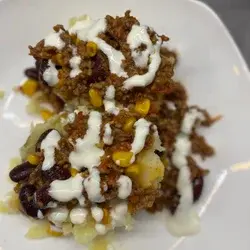 Verwarm de oven voor op 200°C (392°F) hetelucht. Schrob en droog de aardappelen, prik ze elk 6–8 keer in, wrijf ze licht in met 2 theelepels olijfolie en zout.