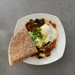 Przygotuj ten prosty i zdrowy omlet pomidorowo-szpinakowy na szybkie śniadanie lub lekki lunch. Świeże pomidory i szpinak są podsmażane, zanim jajka zostaną delikatnie ugotowane na wierzchu, wszystko na jednej patelni. Pyszny i łatwy sposób na cieszenie się warzywami! Ten przepis jest na jedną porcję.